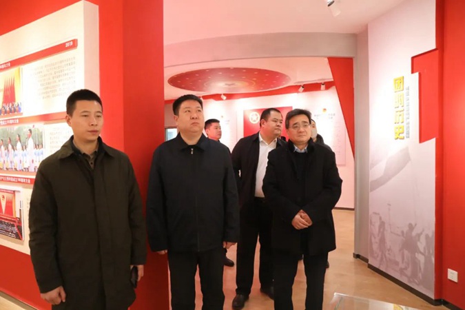 雷尊宇一行参观了东方红广场、北平楼廉政文化作品展、伟人塑像厅、将军书画厅、红色藏品厅以及党史馆、团史馆等红色展馆,并就共青团工作与陪同人员进行了交流。
