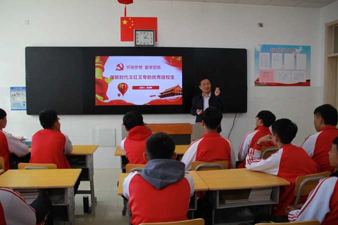 习近平总书记在《求是》杂志发表文章指出,思政课是落实立德树人根本任务的关键课程,要求领导带头走进课堂,推动思政课建设。作为红色教育特色学校,滨州市高级技工学校着力构建党委统一领导下的思政课改革方案,实现全员、全过程、全方位思政育人,让“拔节孕穗”期的技校学生树立好正确的“世界观、人生观、价值观”。通过红色铸造,红色灌输,培养具有爱国主义、英雄主义的有用之才。从2019年开始,每周一下午校长带头登台上思想政治课,中层以上领导干部坚持上思政课,已成为一项长效机制。