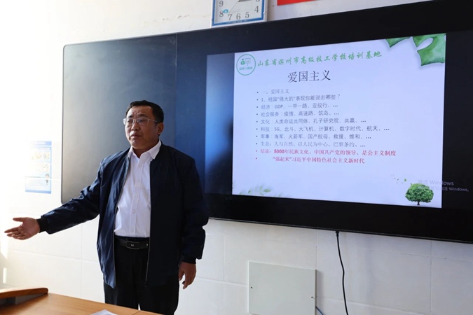 10月12日,滨州市高级技工学校2020级新生迎来了意义非凡的“思政第一课”。党委书记、校长王树林带头,校级领导及各科室主任、教学中心主要负责人纷纷走上讲台,为新生讲授思政课。